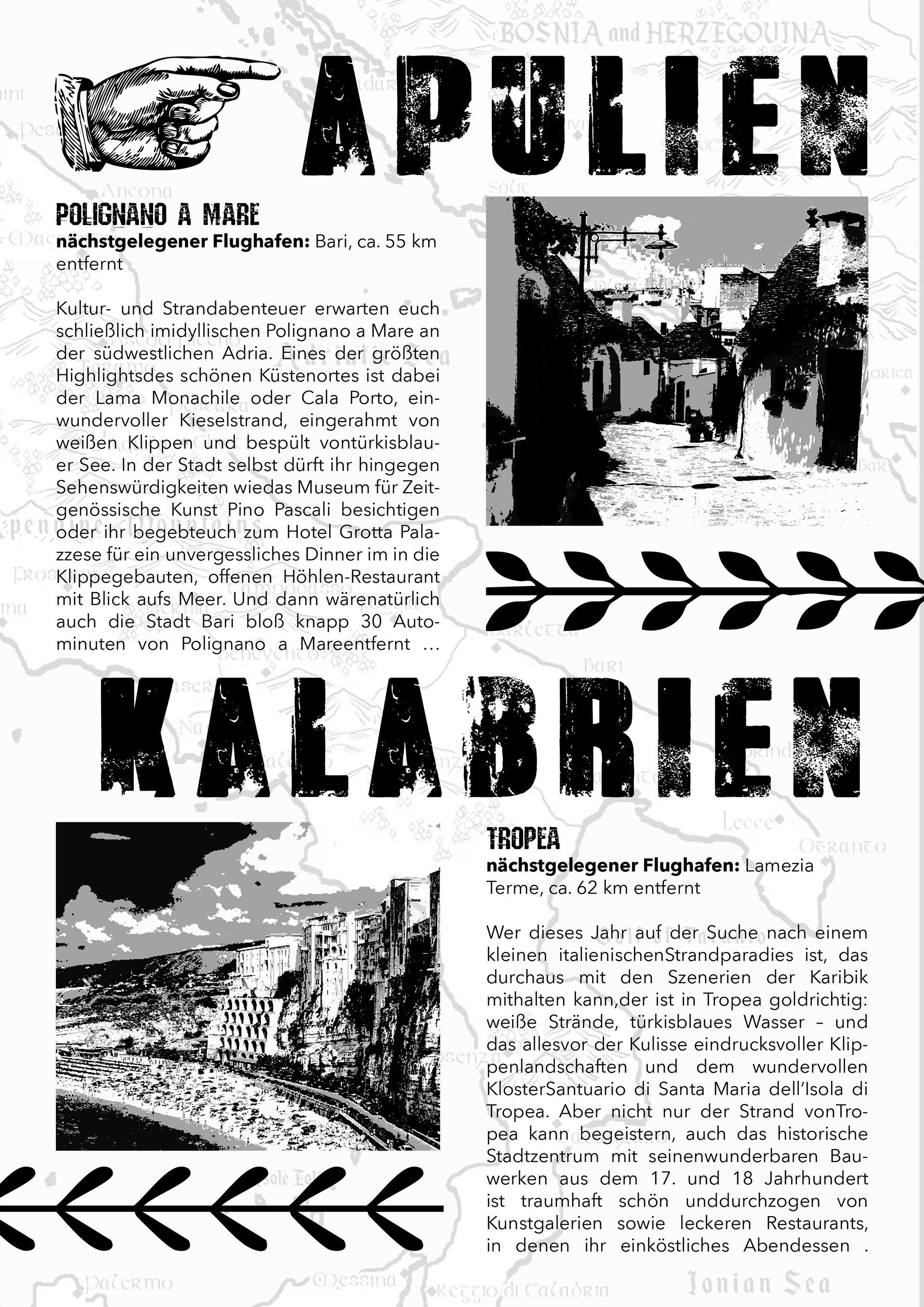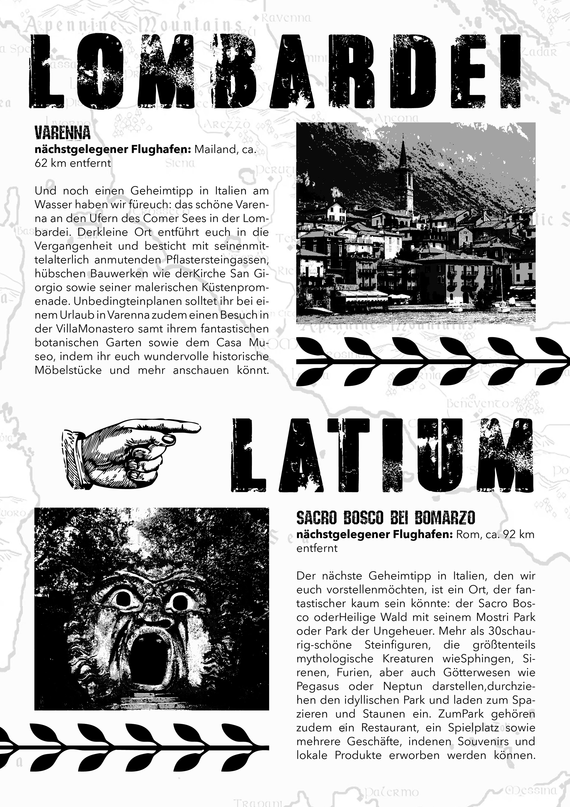 Ich habe mich für einen starken Schwarz-Weiß-Look mit grungy Schrift entschieden, um die Bilder noch besser wirken zu lassen und eine auffällige Typo-Hierarchie zu schaffen. Das Ziel war es, trotz vieler Inhalte eine klare Struktur zu behalten und gleichzeitig einen einzigartigen Look zu entwickeln.