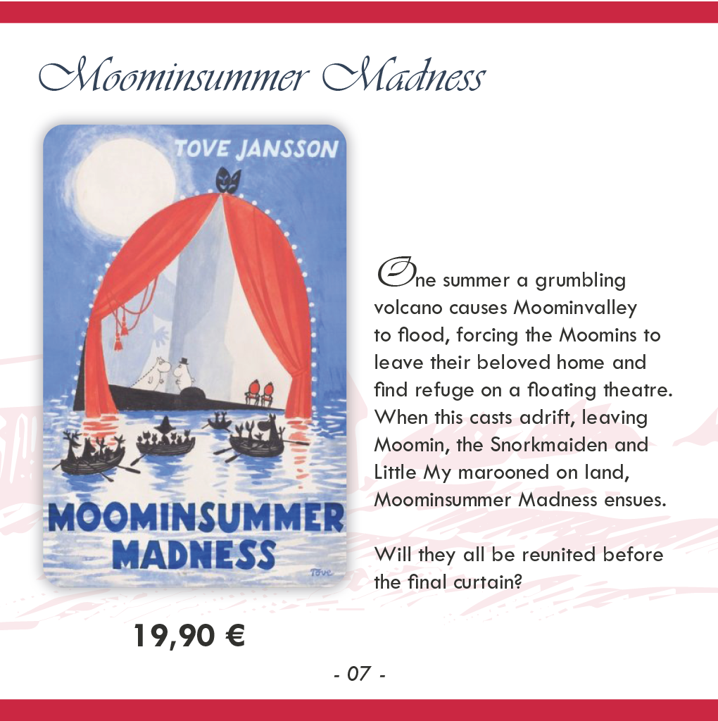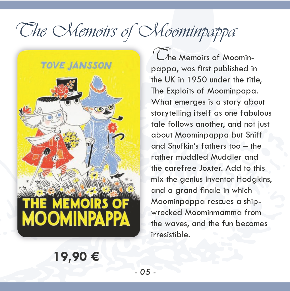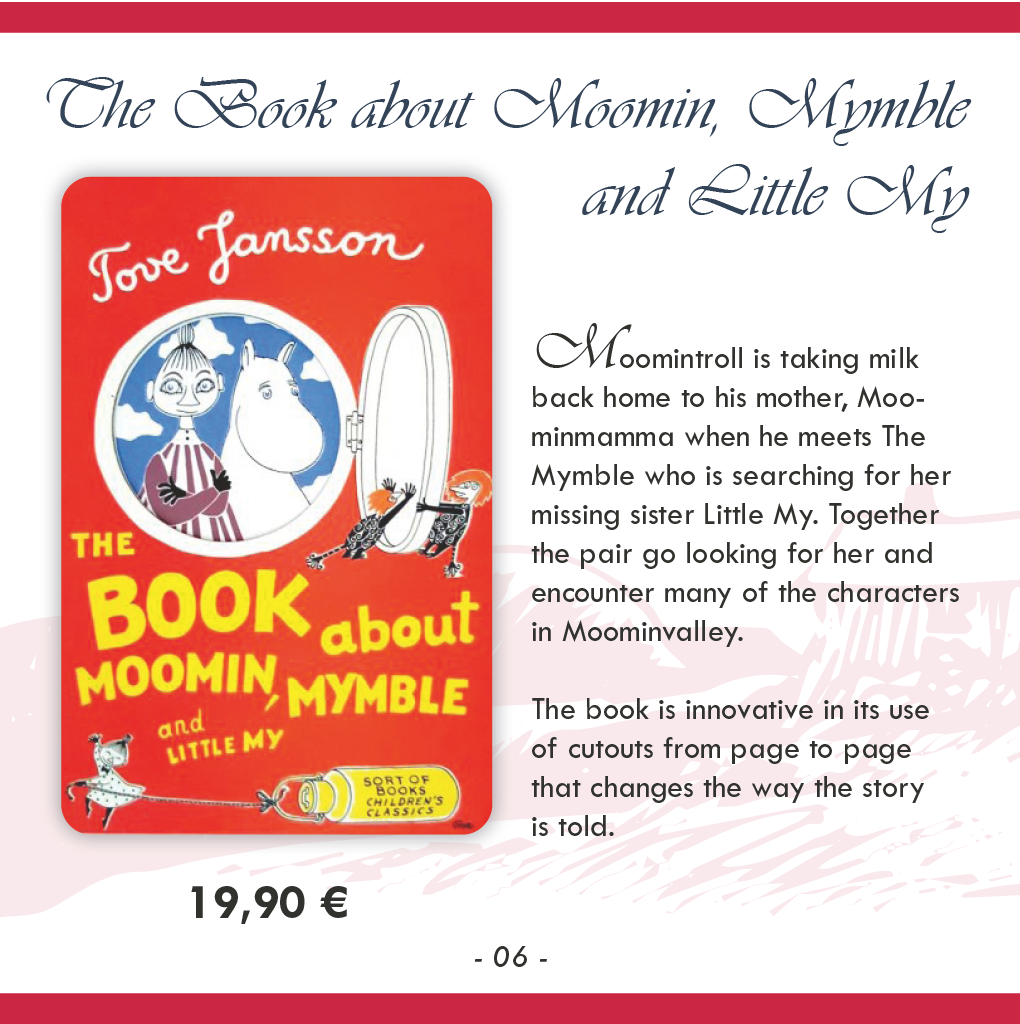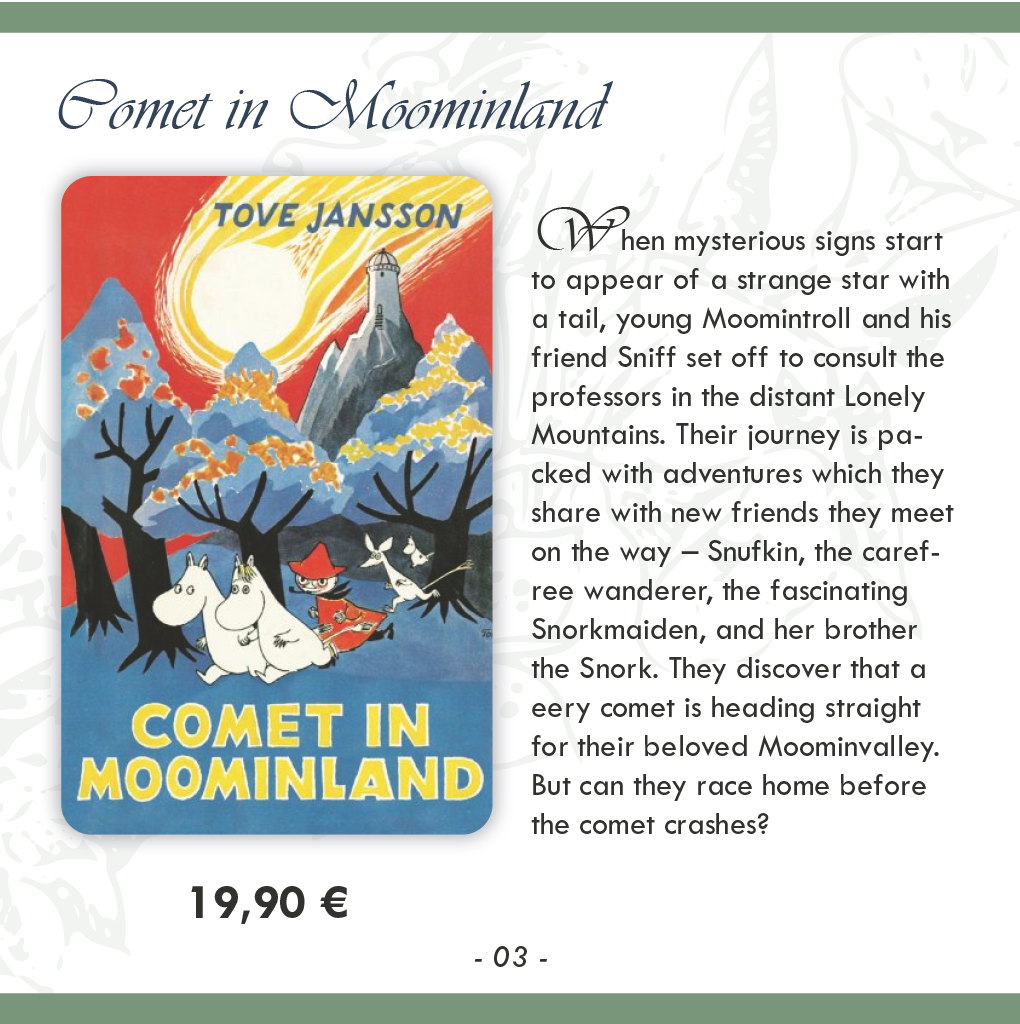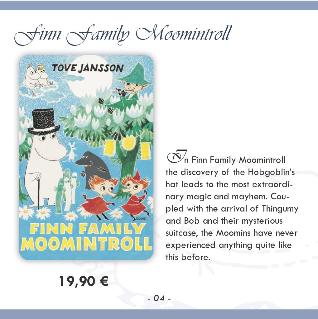 Für meine Bewerbungsmappe habe ich einen fiktiven Produktkatalog für die Moomin-Bücher gestaltet. Das Projekt kombiniert typografische Experimente mit Editorial Design. Die Bilder und Texte stammen von der offiziellen Moomin-Website und dienen ausschließlich der Veranschaulichung.