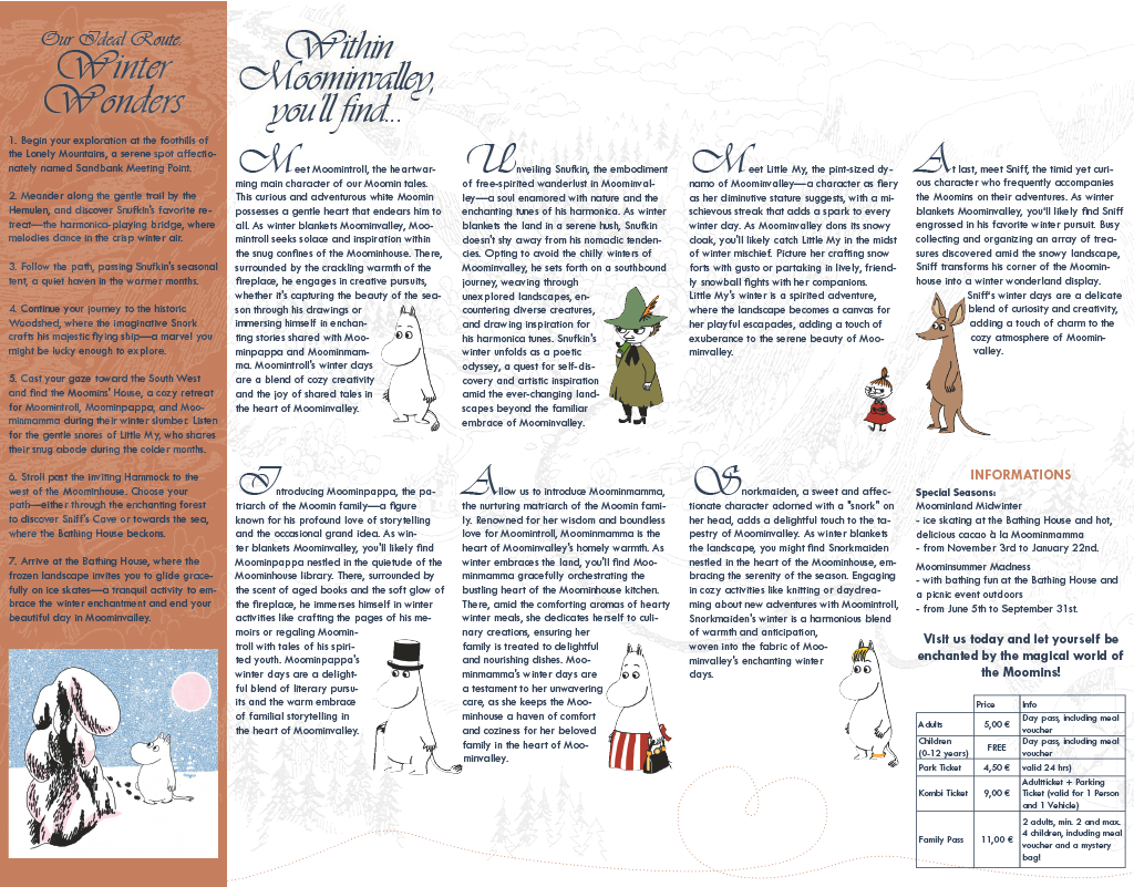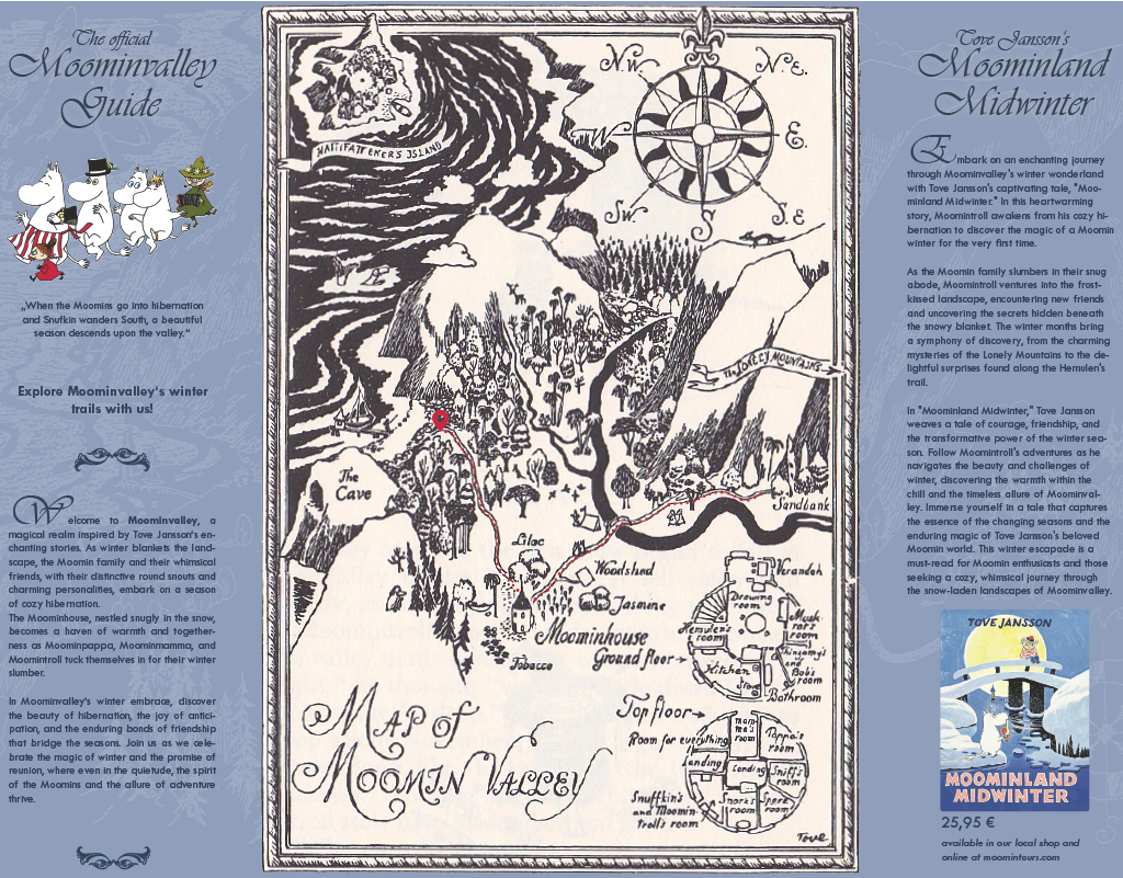 Als Ergänzung zum Produktkatalog habe ich eine fiktive Faltkarte für einen Moomin-Theme Park entworfen – handlich, zum Mitnehmen und zur Orientierung im Moominland.