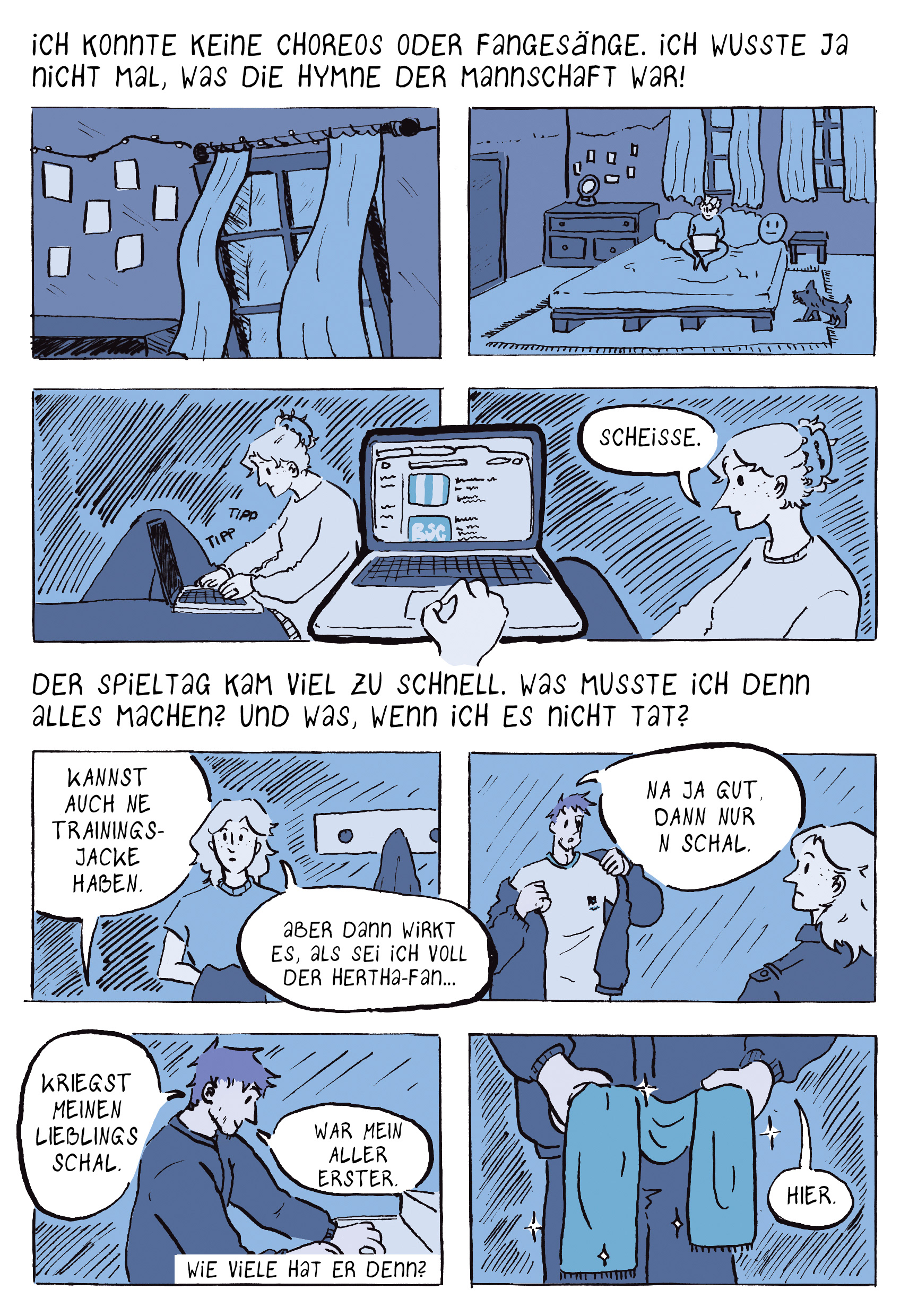 Da ich in meinem Umfeld viele Fußball-Ultras habe, kam mir das Thema wie gelegen. Ich wollte mich schon immer tiefer mit der ganzen Materie des Fußball-Fanseins beschäftigen und hatte mit diesem Comic Projekt die perfekte Möglichkeit, das nun endlich umzusetzen. Dabei erstellte ich Fragebögen die meine Ultras alle detailgenau und mit einer Inbrunst beantworteten, die ich erst gar nicht erwartet hatte.