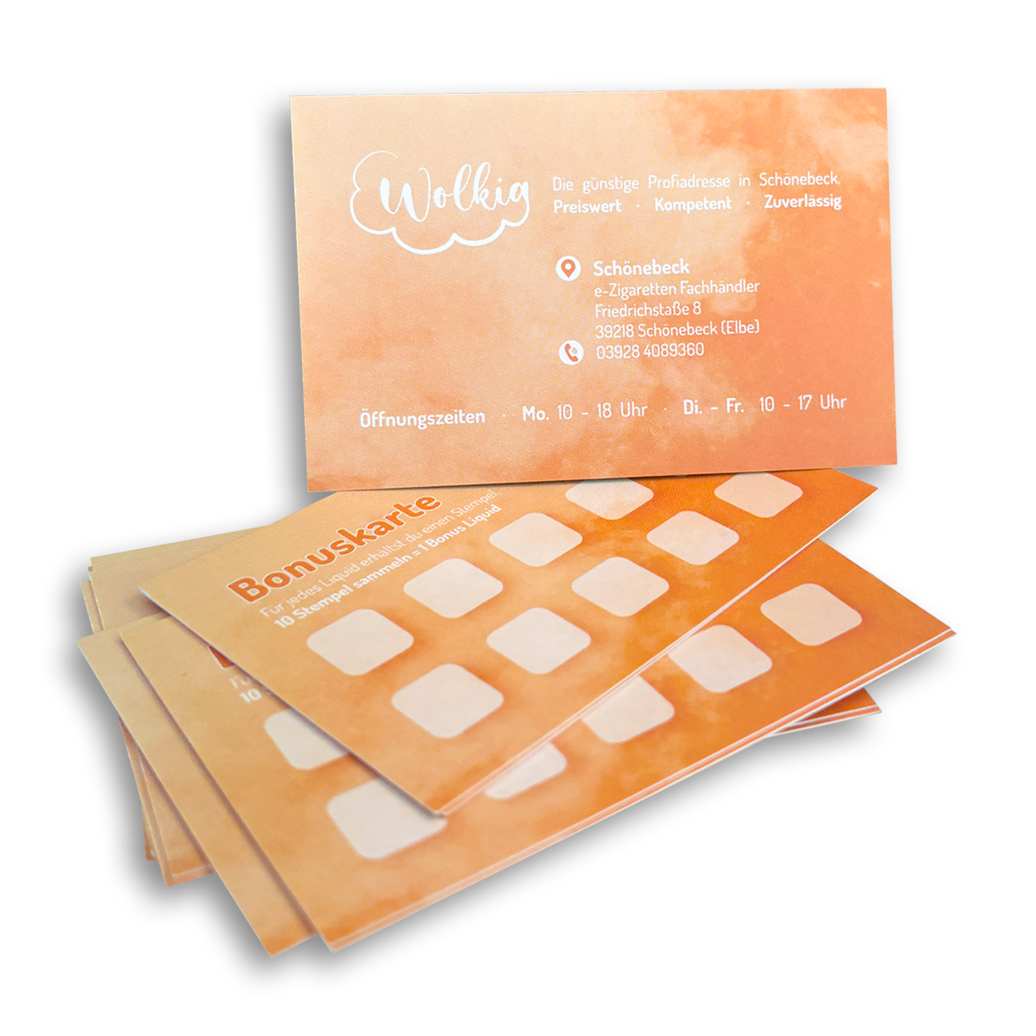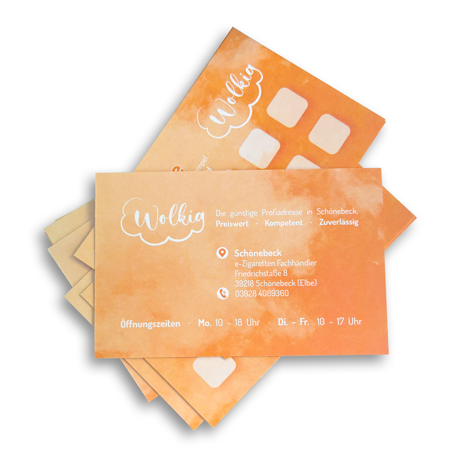 Für den E-Zigaretten-Fachhandel „Wolkig“ in Schönebeck habe ich ein einheitliches visuelles Erscheinungsbild entwickelt. Ziel war es, die freundliche und kompetente Ausstrahlung des Unternehmens in ein frisches, zugängliches Design zu übersetzen – ganz ohne die typischen dunklen Vibes der Branche.